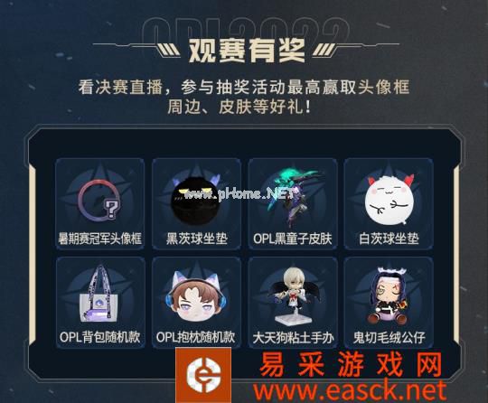 【看决赛直播赢好礼,周边、皮肤应有尽有】 观赛中除了比赛战况,福利同样精彩,各大平台观看2022OPL暑期赛,均有机会获得手办、公仔、背包、抱枕和坐垫等实物周边以及冠军头像框和OPL黑童子皮肤等游戏内福利。在决赛期间各大直播平台搜索”决战平安京“,打开官方直播间即可观赛赢好礼!