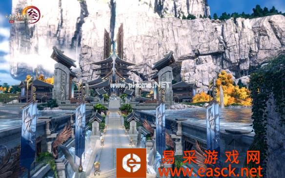 刀宗建筑为恢弘大气的传统中式建筑,周边民居则以朴素的渔民小屋为主,辅以排筏码头和充满烟火气的酒家,跟主打“仙气”的东海系列地图形成差异化表现。