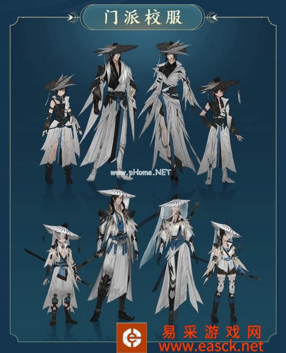 【身着劲装软甲 门派服饰干练潇洒】 在服饰方面,刀宗弟子酷爱劲装软甲,衣着轻便不拖泥带水,与其武学风格相呼应。服饰以白色为主色,辅配水蓝、黑、金等色,多采用羽衣搭配鸮纹,取意被古人奉为“战神”的鸟儿,象征着勇气、速度和力量。整体造型侠气凛然,干练潇洒。