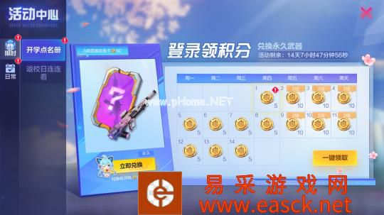 登录领积分,即可兑换永久武器外观! 2. “返校日连连看”活动