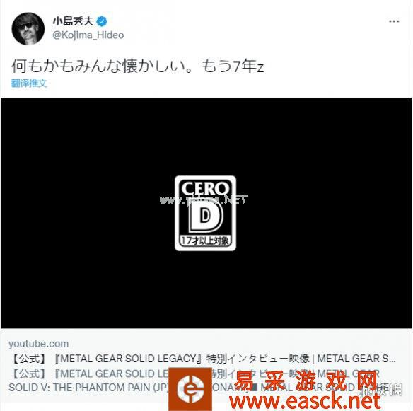 小岛秀夫也在推特上转发了许多《合金装备5》的相关内容,包括Konami在7年前发布的《合金装备5》发售采访视频,并配文道:“已经过去7年了,我怀念那时的一切。”