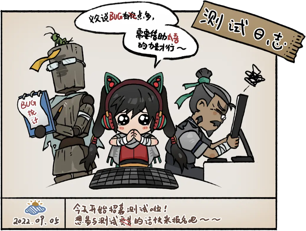 原文如下: 大家好,我是茄子, 因为《太吾绘卷》的游戏内容过于庞杂, 无法仅凭我们团队数人的力量排除所有问题, 所以,我们衷心地希望,能够在正式发布游戏前,借助广大毅力过人的太吾们的力量,帮助我们进一步地测试游戏功能,排除游戏存在的BUG, 另外,由于是功能测试,游戏会根据大家发现的问题进行较为频繁地改动, 参与测试的各位太吾,将会始终面临着存档失效,游戏崩溃,需要枯燥的重复操作等十分影响心情的情况,还望申请测试的朋友们有这方面的心理建设,并始终严格遵守保密规则, 本次功能测试的申请及结束时间: 开放测试申请的时间:2022年9月5日10:00 测试申请结束的时间:2022年9月8日16:00 大家可以点击此链接进行申请: http://beta.conchship.com.cn 也可以使用手机扫描图片中二维码进行申请,