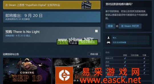 2D动作冒险游戏《无光之地(There is No Light)》PC版将于9月19日推出,登陆Steam、Epic Games Store和GOG。此外,《无光之地》的主机版本,包括PS4、Xbox One、Switch也在筹备中。