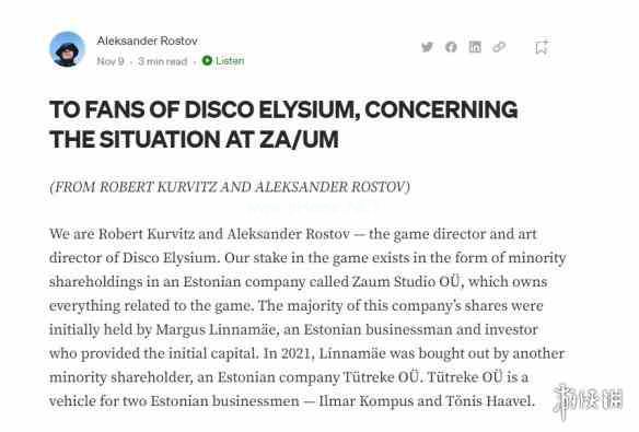 关于《极乐迪斯科》的权益纠纷目前有了新进展,游戏总监 Robert Kurvtiz 与艺术总监 Aleksander Rostov 发表了一份联合声明,解释了他们要起诉原公司大股东的原由。(原文链接>>>)