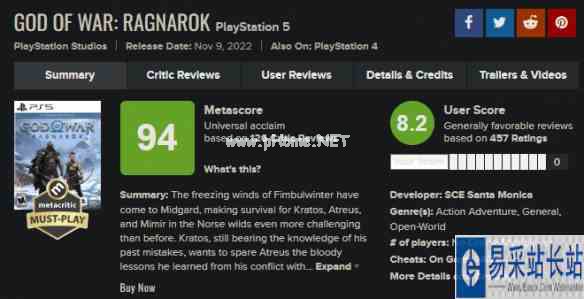 《战神5》M站用户评分8.2:有史以来最好的游戏之一!