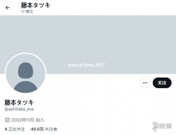 于是,在11月12日,推特出现了一个名为「藤本树(藤本タツキ)」(@ashitaka_eva)的新帐号,个人档案没有任何说明,英文帐号也与藤本树名字无关。