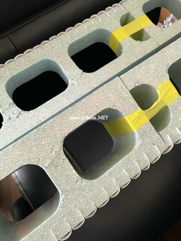 ▼基底是由空心砖造型的保丽龙切割再制,表面嵌入印刷的漫画封面。