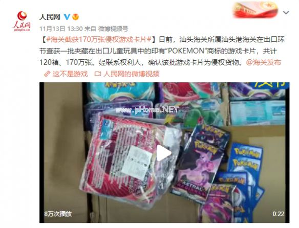 注意辨别真伪!汕头海关截获170万张侵权宝可梦卡片