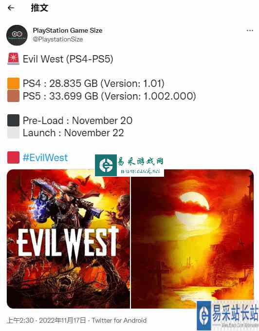 PS版《暗邪西部》容量大小曝光 11月20号开启预载!