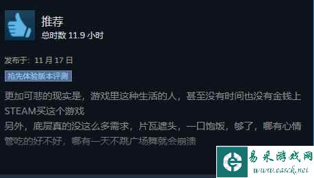 即便是对游戏的玩法和制作水准给出好评的玩家,也不免会感慨作为“底层”的主角,进城打工所追求的东西未免有些太多了