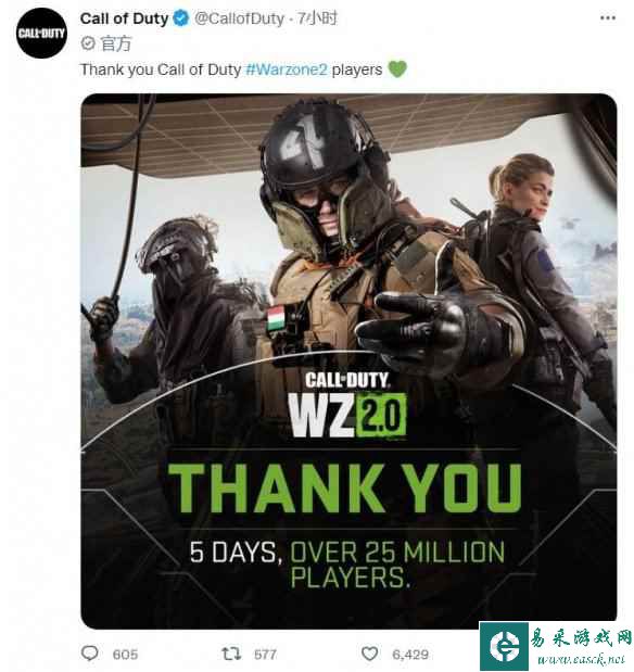 刚上线5天!《使命召唤:战区2》玩家数突破2500万人
