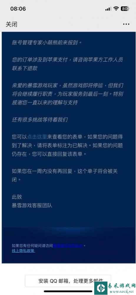 造成这种情况的原因,普遍是因为玩家在游戏过程中涉及了IOS充值购买。在这种情况下,网易方的客服也表示无能为力。只能通过联系苹果官方工作人员及客服,才能解决退款方面的问题。