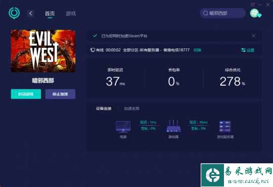 网易UU加速器拥有行业领先的加速技术,支持电脑/主机/掌机/手机全平台加速,可以为各平台的《暗邪西部》玩家提供全面的加速服务。网易UU加速器铺设了全球7.5万个海外节点,覆盖全球200多个国家和地区,从而实现专线互联,为玩家们提供稳定流畅的网络环境。同时,网易UU加速器还拥有“一键加速”功能,能够帮助玩家快速接入专线,免去手动设置节点的烦恼,使用起来轻松便捷。另外,主机玩家还可以使用UU主机加速App,配合UU加速盒使用,不管是游戏联机还是下载,都能充分发挥带宽潜力,轻松做到下载速度拉满,联机稳定流畅。有了网易UU加速器的加持,大家一定可以与好基友一起轻松大杀四方,击败恐怖的恶魔。