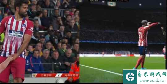 左为游戏画面 过去,游戏画面和真实的电视转播其实很好区分。然而随着直播技术的提升,画面越来越清晰。早年间总是显得昏暗的比赛转播画面,而今也像游戏那样明亮、鲜艳、对比度高。这反倒拉近了虚拟和现实之间的距离。