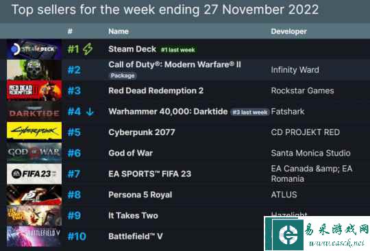 当前正值Steam秋促期间,玩家们面对2022年以来力度最大的一次折扣活动(没有之一),已经无法按捺住躁动的心了。许多拥有好口碑的热门大作,都受到了大伙的青睐。新一周的Steam周销榜上,也基本都是熟面孔。