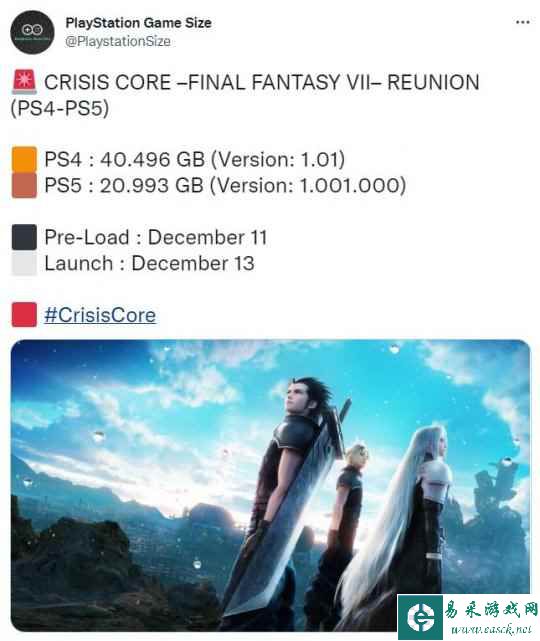 《最终幻想7:核心危机 再融合》PS版容量大小曝光 12月11日预载