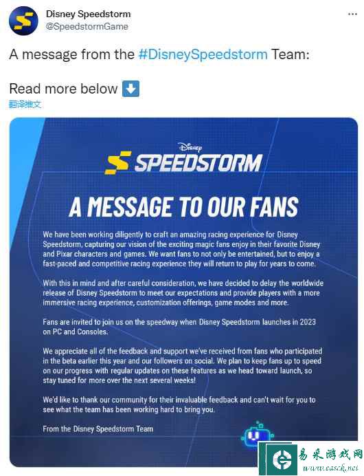 迪士尼赛车游戏《迪士尼无限飞车》官方今日宣布,本作将延期至2023年(原定于2022年内发售),将进一步打磨游戏品质,为玩家带来更好的体验。