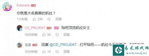 在刚刚官宣的《巫师3》中文配音视频中,使用了杰洛特与凯拉交谈的片段。有玩家在视频下评论:“你就是大名鼎鼎的凯拉?”对此,CDPR官方幽默地回复:“贴吧顶流凯拉女士”,带头玩起凯拉梗,让人直呼接地气! 玩过《巫师3》的玩家都知道,在“以知识进步为名”支线任务中,非常容易选错对话,导致一言不合与凯拉开战。相信大部分玩家都砍死了凯拉... 在“巫师3”贴吧内,每天都可以见到新鲜的凯拉贴子,有的杰洛特甚至连衣服都没穿。玩家也是做出了“凯拉又死了.jpg”的梗图,让人忍俊不禁。 |