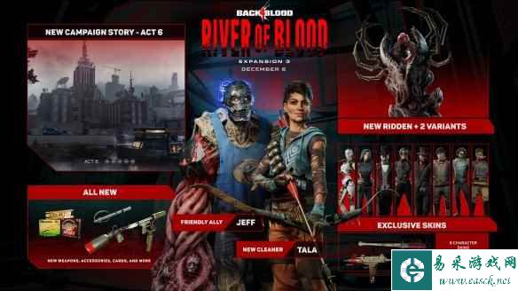 《喋血复仇》可能不是许多人希望的《求生之路》的完美继承者,但这款合作射击游戏也取得了不错的成绩。开发商Turtle Rock Studios一直在更新体验与增加内容。 现在,它的第三个扩展包也已经发布。 【网】《喋血复仇》“血河”DLC发售预告 名为“血河”的新DLC为玩家带来了丰富的内容。这包括在战役中添加第6章,新的盟友Jeff和清洁工Tala也将加入玩家,他们将面对新的敌人Ridden以及2个新变异体。除此之外,还增加了8个专属角色皮肤,12个专属武器皮肤、新武器、新配件和卡牌。 同时,伴随着新的DLC的推出,《喋血复仇》最新更新还加入了新的免费PvE模式蠕虫试炼。 《喋血复仇》现可在 PS5、Xbox Series X/S、PS4、Xbox One 和 PC 上游玩。 |