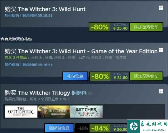 PC玩家注意!Steam平台的折扣也将于12月14日同步结束,届时将恢复原价。虽然《巫师3》年度版/完全版的质量值得158元的售价,但谁能拒绝只花31.6元就能买到这么优秀的3A大作呢?建议还没拥有游戏的玩家尽快入手哦!