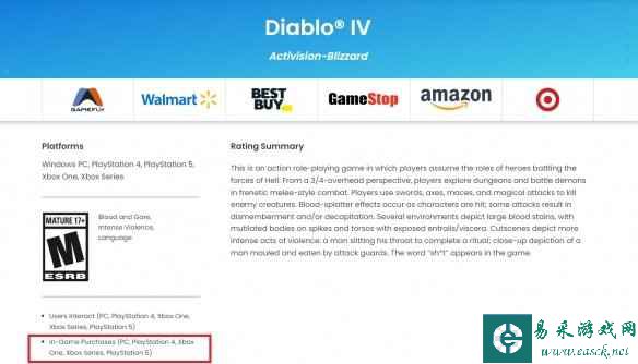 《暗黑破坏神4》已通过美国ESRB(娱乐软件分级委员会)评级,据评级信息显示,本作将包含内购选项。