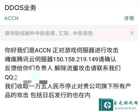 黑客对《弈剑行》的开发者进行了勒索,要求支付1.5万元才会终止DDOS网络攻击行为。可开发者却不打算服软,宁可下架也不接受这种条件。结果就是,仅仅上线一天的《弈剑行》就关服了,这引得玩家们一阵唏嘘。