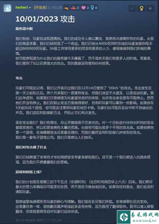 关于黑客的DDOS攻击,对独立游戏开发者的危害其实远比普通玩家想象中更强。《鹅鸭杀》服务器被干挺,受到的影响其实已经算是比较轻的了。2021年8月份,就曾有一款国产游戏遇到同样的事,可最终的结果却是游戏首发后仅一天就被迫下架了。