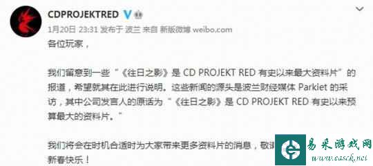 近日CDPR官方在微博上发布声明,澄清《往日之影》不是CDPR有史以来最大的资料片,而是CDPR有史以来预算最大的资料片。