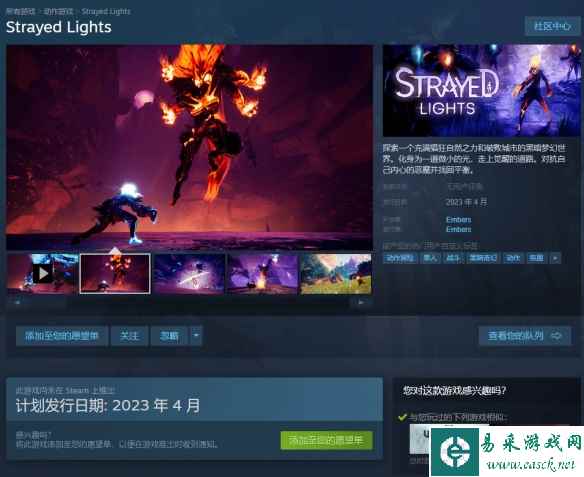 法国开发团队Embers公布了新作《Strayed Lights》的首个宣传视频。这款异世界冒险游戏将于今年4月发售,预计同步登陆PC、PS4、PS5、Xbox One、Xbox Series X|S和Nintendo Switch平台。