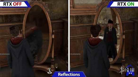 《霍格沃茨之遗》开关光追时的画面对比:提升巨大