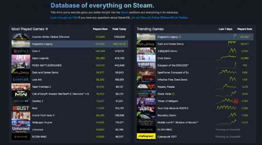 可令人意外的是,这款游戏仅靠着购买了豪华版的玩家,就冲上了Steam玩家在线榜TOP10的位置。48万的玩家在线数据,使得《霍格沃茨之遗》在Steam平台单机游戏这个品类上,仅次于《赛博朋克2077》的107万。 不难预料,待到《霍格沃茨之遗》正式解锁后,它将打破这项纪录,毕竟购买普通版本的玩家只会更多。(《艾尔登法环》具有联网功能,所以未被Steam计入单机游戏品类)