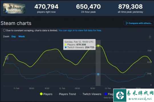 《霍格沃茨之遗》Steam在线超87.9万 Steam第三火爆单机游戏