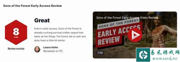 恐怖生存游戏《森林之子》在不久前在Steam平台以抢先体验的形式推出,IGN为本作打出了8分。