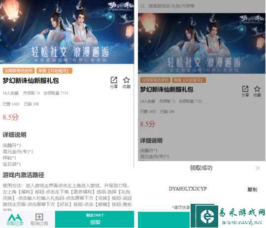 尽量还是在叶子猪助手领取礼包福利,这里的礼包数量多而且不会失效,长期都有梦幻新诛仙礼包码,强烈建议领取之后订阅收藏一下,下次就可以第一时间领到梦幻新诛仙礼包啦~ |