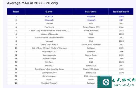 根据榜单的情况来看,排在全球人气前列的依旧还是《ROBLOX》、《我的世界》、《堡垒之夜》、《模拟人生4》这四款受众面超广的全年龄段PC端游。接着则是《使命召唤:战区》、《英雄联盟》、《CSGO》这些在国外一直都很火的电竞游戏。
