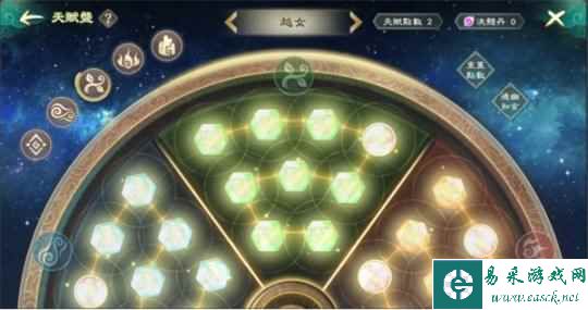 进阶天赋盘解锁 当角色天赋盘点满50点,可消耗资源启动「通幽知玄」,将初阶修为转化为进阶天赋。开启进阶天赋后,使用洗髓丹仅会重置进阶天赋,基础天赋盘将会封盘不再重置。 进阶天赋五盘五行有其主属性强化(体力、真气、攻击、防御、爆击、咒力)搭配不同副属性增减,当同盘面全部启用后可觉醒专属天赋。