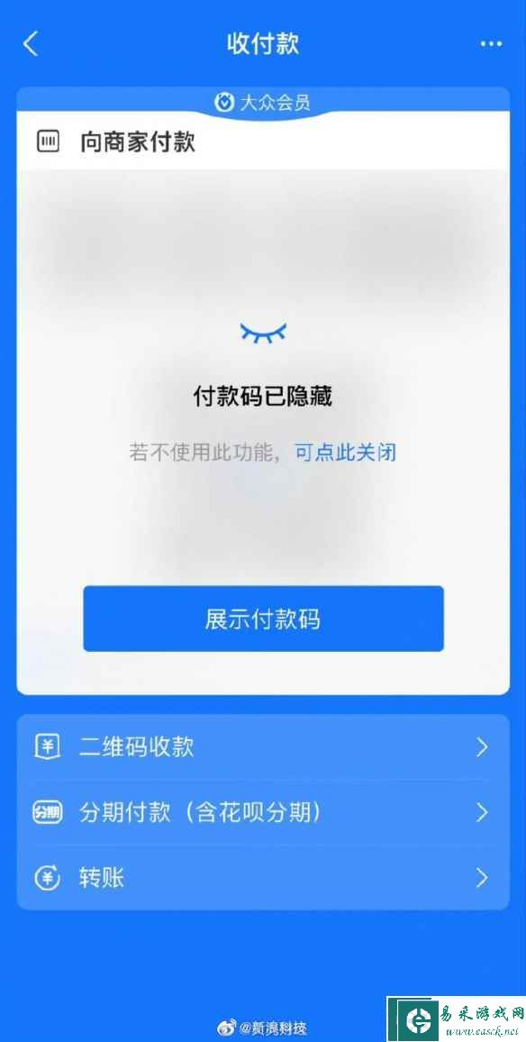 支付宝官方微博今天(4月17日)宣布,支付宝目前已经正式上线“付款码隐私保护功能”,功能开启后可自动隐藏付款码。