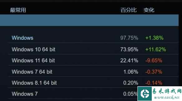 值得一提的是,根据Steam硬件调查记录,目前大部分Steam玩家仍然还在使用Win 10系统,Win 11系统的占有率仅为22.41%,不到Win 10的三分之一。不知道大家现在有没有升级Win 11呢?
