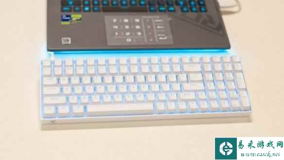 雷柏V500 DIY-100搭载了单色背系统,冰蓝色的灯光搭配上纯白的键盘机身,桌面氛围相当唯美,非常适合电竞潮玩爱好者搭配白色配件打造纯白桌面全家桶。