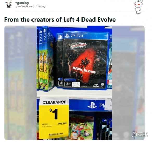 Reddit用户NotToddHoward透露,澳大利亚本地零售百货商店BIG W正在进行清仓活动,其中被称为《求生之路》精神续作的《喋血复仇》PS4实体版现在仅售1美元,其标签上的原价为29美元。 值得一提的是,《喋血复仇》于2021年10月份上市,开发商Turtle Rock在2023年2月3日表示对《喋血复仇》停止内容更新,他们将集中精力开发下一款作品。 |