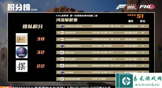 极限竞速:地平线5系列赛事(简称FHL),是《极限竞速:地平线5》中国大陆地区官方举办的最高规格的专业竞技赛事。本次“FHL春季赛”2023FHL春季赛第一阶段比赛直播现已结束,速度与激情,热血与狂欢,精彩比赛值得回味哦!快来直播间重温赛事,关注后续直播更有机会获得T248X 赛车遊戏方向盘套装等实体豪礼! 【直播平台】 B站、斗鱼 【第一阶段正赛晋级情况】 个人赛: A组:第一名Xuan819、第二名ElixFish晋级下一轮