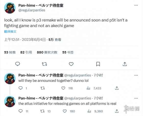 2.传闻:《女神异闻录3 重制版》即将公布 推主regularpanties表示《女神异闻录3 重制版》将很快公布,Atlus会让该作品登陆全平台。
