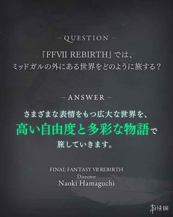 3.《最终幻想7:重生》拥有极高自由度 官方公布了《最终幻想7:重生》的开发者问答第二弹,官方表示在本作中玩家可在广阔的世界中,以极高的自由度展开旅行。