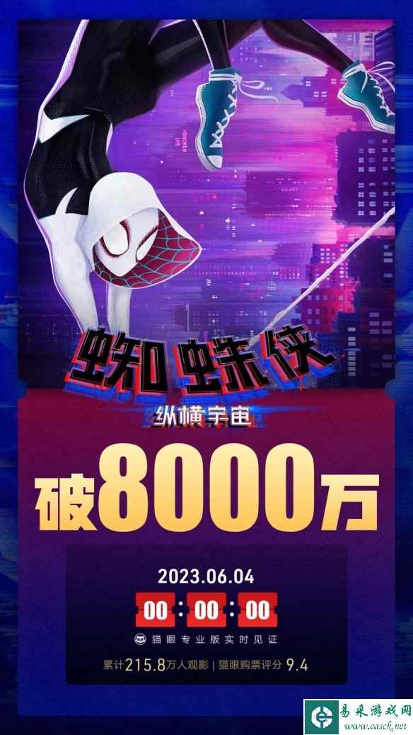 10.《蜘蛛侠:纵横宇宙》内地票房破8000万 据猫眼电影数据显示,于6月2号上映的《蜘蛛侠:纵横宇宙》中国内地票房已破8000万。