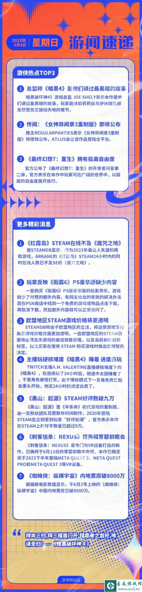 各位网友周末愉快,来 早报 看看昨晚和今晨有哪些值得关注的游戏资讯吧~