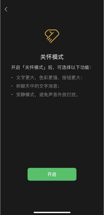在iOS微信更新到最新版本之后,通过“微信”-“我”-“设置”-“关怀模式”-“安静模式”,就能开启。开启之后微信在消息通知、音视频通话、视频号内容播放等所有场景下,都不会再发出声音。 微信官方表示,这个功能是专门为了听力障碍人士开发的。他们深入各地调研了100多名聋人,他们最主要的感受是害怕声音外放,害怕别人听到他们用手机时发出的声音。而聋人多数时候会忘了手机声音已经打开;他们也无从得知,那个被误调节到最高的音量柱,发出的声音有多大。 在“安静模式”下,听力障碍人士可以更自如地玩手机,“安静模式”下一切无声,但如果你需要临时开启声音,可以点击手机“+”音量:微信将开始播放声音,直至你离开微信,或将音量调至最低。