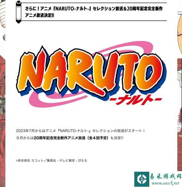 《火影忍者》官方宣布,20周年纪念企划的完全新作动画将于9月3日正式开播!全部4话。