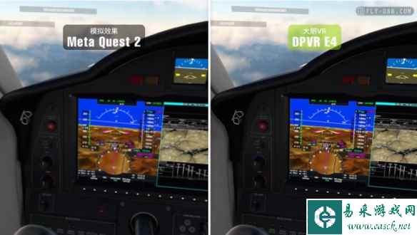 总的来说,采用菲涅尔透镜的大朋E4基本克服了菲涅尔自身存在的部分缺陷,并将其高光学效率、高视场角等优势予以放大,最终带来了更为出众的视觉体验。 除此之外,大朋E4还配备了夏普定制5.46英寸Fast-LCD屏幕,能够提供4K分辨率和120Hz刷新率,并利用DP直连传输低损耗、低延迟的特性予以保全。 飞行驾驶游戏老饕——B站UP“Diablohu”就曾在一期视频中提到,对比某款主流一体机(采用Pancake),大朋E4能够清楚地看到仪表盘上暗红色的字符内容,并未出现模糊、暗淡的情况,除了菲涅尔镜片的亮度加持外,直连的无损传输也起到了关键作用,让4K原生画质得以呈现。