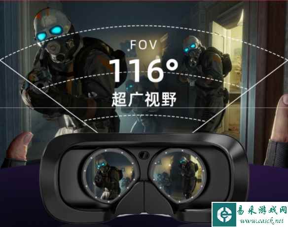 亮度之外,“双目重叠”对于视觉体验也有着一定加持,尤其在沉浸感、用眼疲劳度等方面影响显著。 所谓“双目重叠”,指的是双眼立体视觉系统的重叠部分,应用于VR中则能够让体验者在虚拟空间中具备分辨“远近深浅”的能力,进一步提升沉浸感。 目前,市面上的VR主要应用“完全重叠”和“部分重叠”两种双目重叠方式,对于光损高、视场角偏小的Pancake来说,大部分采用视角广、纵横比优越的“部分重叠”弥补缺陷,但这种重叠方式也容易造成“双眼竞争”,增加眼睛负担。 而大朋E4所选用的菲涅尔透镜则不需要有这种担心,直接选用“完全重叠”方案,,让使用者双眼都看到完全相同的内容,无需融合、无需加工,降低用眼疲劳,保障画面真实感。 在Youtube上拥有数万订阅者的VR老炮MRTV(MIXED REALITY TV)在体验过大朋E4后,就曾表示“你们的头显(大朋E4)拥有我所见过的所有头显之中最棒的双目重叠性能。” 除上述区别外,菲涅尔透镜在沉浸感、代入感的重要影响因子——视场角(Fov)上也有着显著优势。 极为接近人眼的116°视场角 一般来说,视场角越大,将更贴近真实视野,带来更高的沉浸感和代入感,达成VR的核心使命,对于任何一台VR来说都是重中之重的性能参数。Pancake光学方案由于镜片较多,除了影响光学效率外,还会导致理论上能够实现的视场角更加有限,上限更低。这也就很好解释市面上大多采用Pancake的一体机,视场角基本都在90°-105°区间内浮动。 也正因如此,在PSVR2刚刚发售时外媒AV Watch的采访中,PSVR2开发负责人Yasuo Takahashi对于“为什么采用菲涅尔透镜而非Pancake”的问题回答称:“在光学设计上,PSVR2的重点是拓宽视场角。PSVR1的水平视场角为100°,而PSVR2将这一数值提升到110°。”菲涅尔透镜没有Pancake的视场角上限限制,理论上可以达到一个非常高的水准,而大朋E4的视场角可达116°,已经非常接近人眼的120°自然视场角。