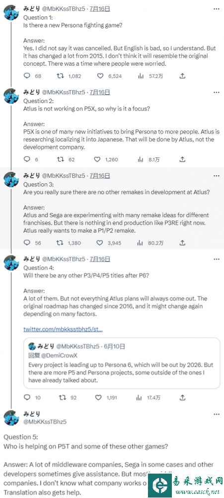以下是爆料的要点: ·有一款《女神异闻录》格斗游戏 ·Atlus正在研究将《女神异闻录5X》本地化为日语,这将由其本社完成,而不是开发公司完美世界 ·除了《女神异闻录3:Reload》外,Atlus目前没在开发其他重制作品,但他们很想重制《女神异闻录1》和《女神异闻录2》,不过这并不代表着游戏就在开发中,明年会有一款新《女神异闻录》游戏,其中包含了《女神异闻录1》和《女神异闻录2》的角色 ·Atlus计划中还有很多《女神异闻录3》、《女神异闻录4》、《女神异闻录5》游戏,但不是每一款都会实现,最初的计划已经发生了很大变化 ·《女神异闻录5T》有很多其他开发商提供开发帮助,包括世嘉和其他公司